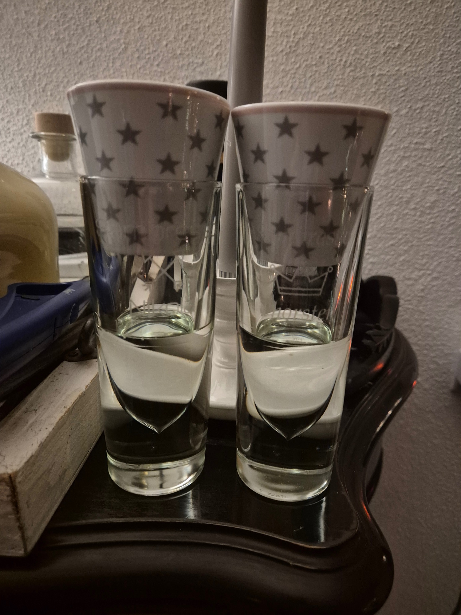 Kreiert von Nikola und mir. Nikola hatte die Idee mit dem Glas und der Espressotasse, ich habe dann das Kunstwort erdacht. Ein Sambresso ist ein doppelter Sambuca mit einem Espresso, nicht gemischt! Ein einfacher Sambresso ist demnach ein einfacher Sambuca mit einem Espresso, während ein Sampio ein doppelter Sambuca mit einem Dopio darstellt. Der Clou: man kann aufgrund der Glas-Tasse-Kombination gleich vier Sambresso auf einmal tragen. Schmeckt nach dem Grillen genauso gut wie nach Grünkohl. Oder einfach mal so. Ach ja, ein Sambresso ohne ist ein Sambuca, ohne Espresso. Genial, oder?
